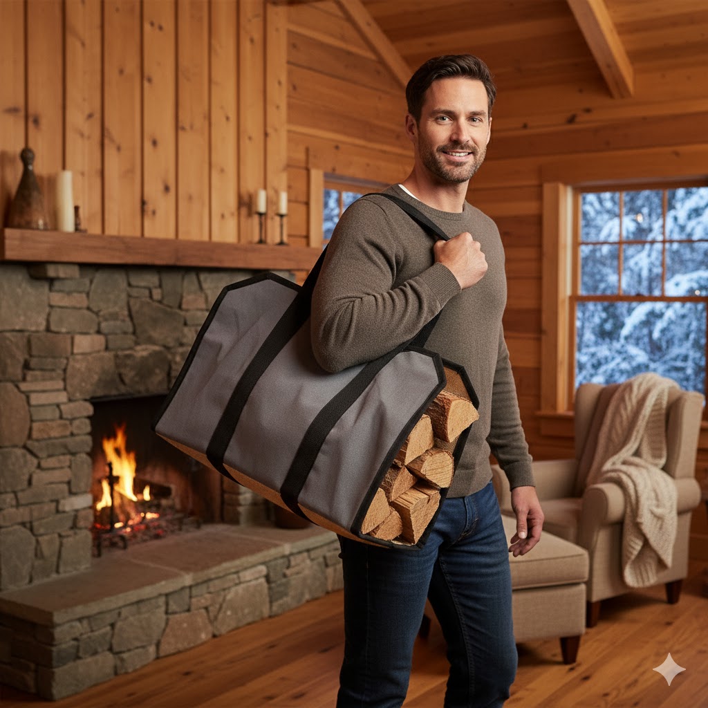 Upgrade your fireplace routine with our Dual-Layer Canvas Wood Tote, engineered for both superior performance and sophisticated style. Forget messy hauling—this carrier is designed to be as durable as it is attractive.